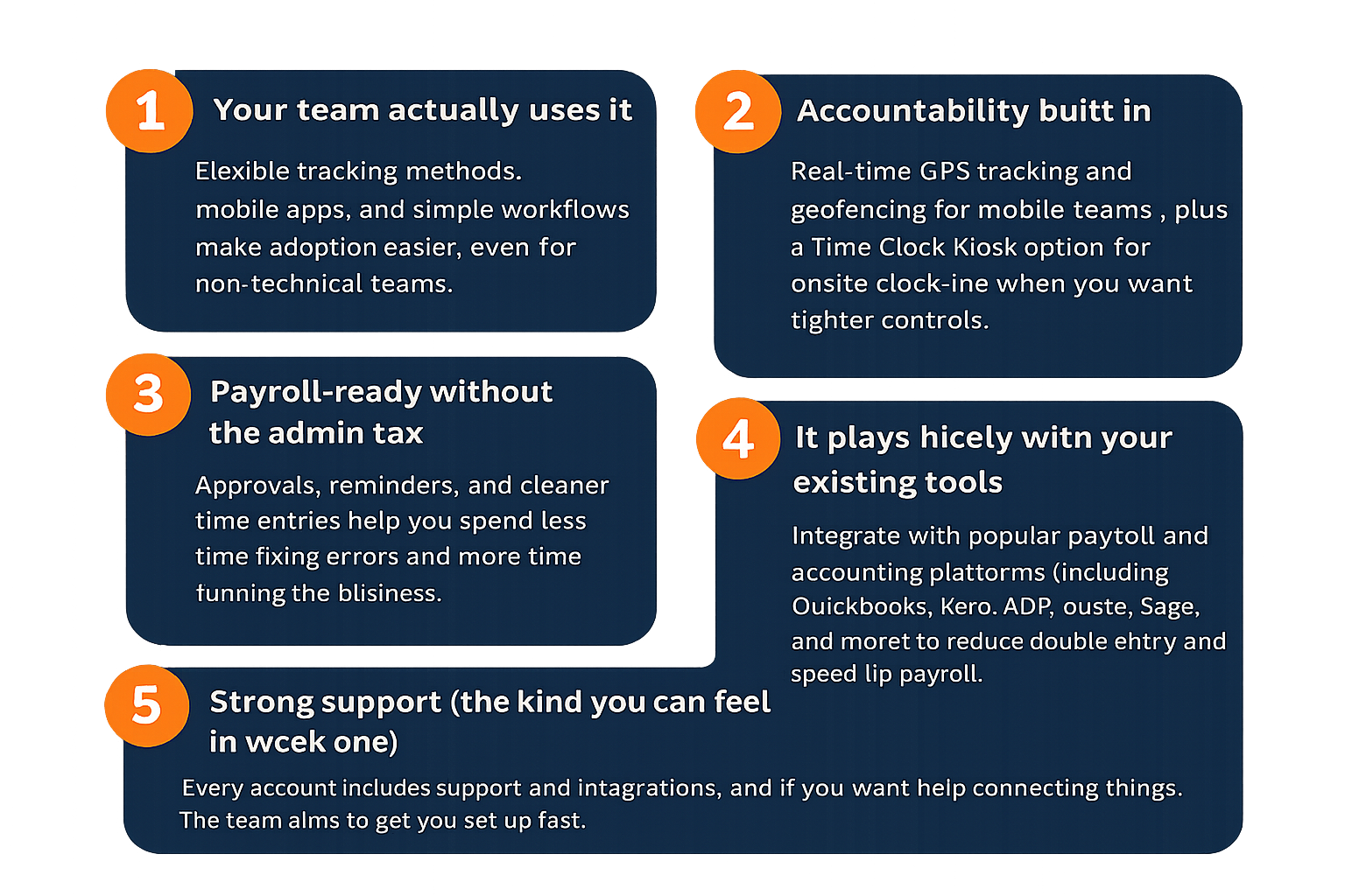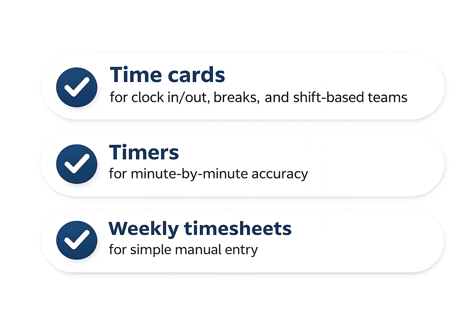 TimeTracker by eBillity helps you record employee hours, approve them fast, and send clean data where it needs to go, like payroll, invoicing, and reporting.